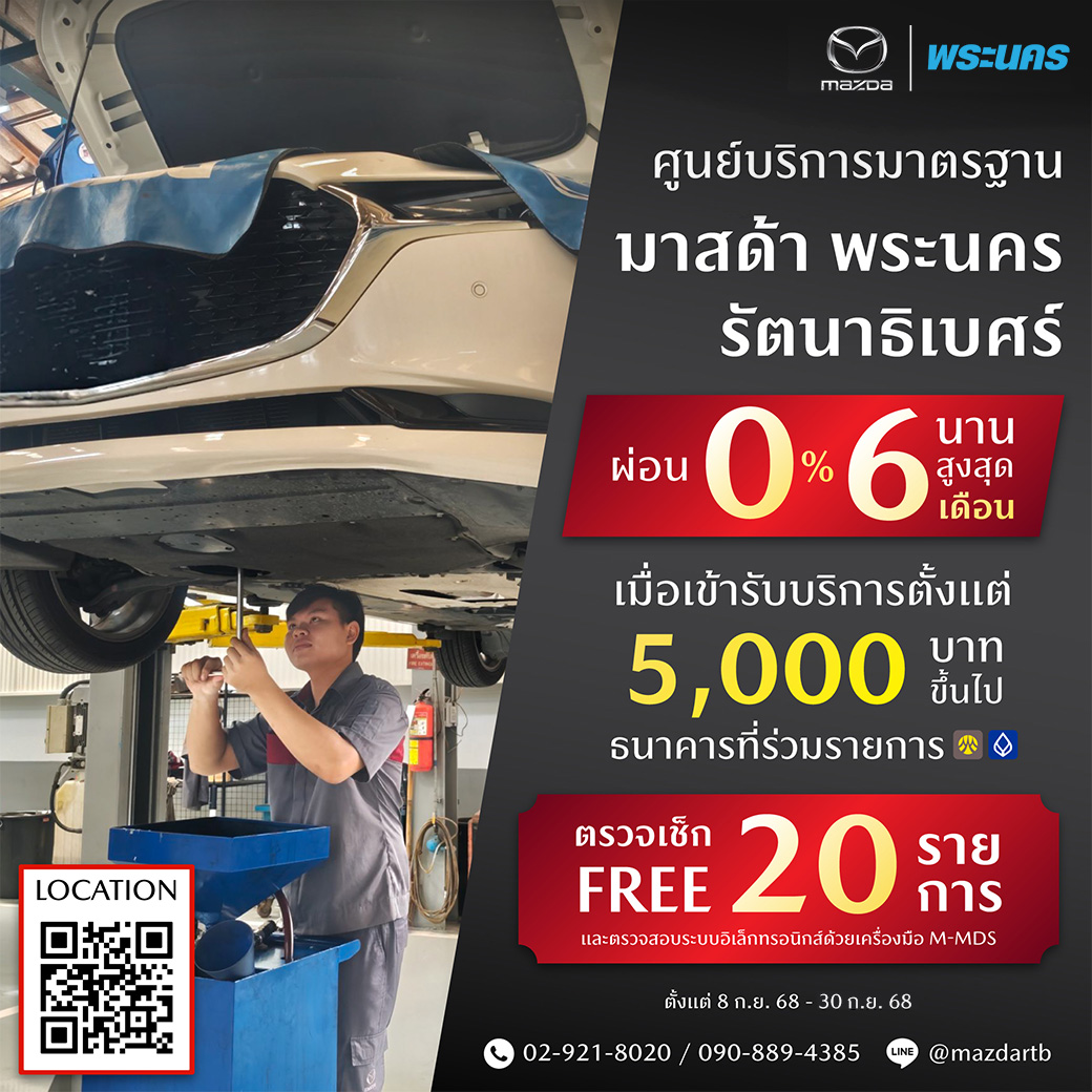 • มาสด้า พระนคร รัตนาธิเบศร์ (ศูนย์บริการ) Tel : 02-921-8020 , 090-889-4385