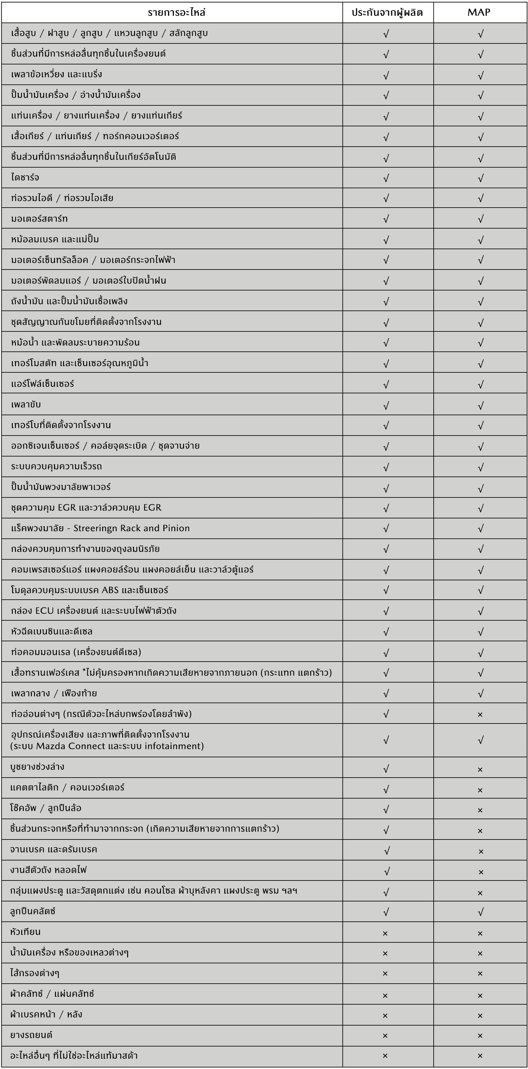 * โปรดศึกษาเงื่อนไขและรายละเอียดเพิ่มเติมของแต่ละผลิตภัณฑ์ได้จากผู้จำหน่ายมาสด้า