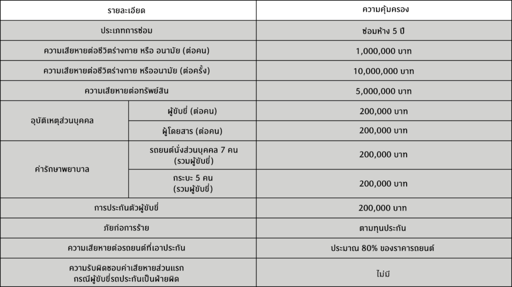 ความคุ้มครองของกรมธรรม์ประกันภัยชั้น 1
